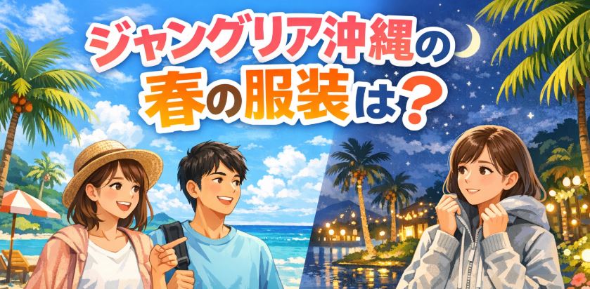 実は沖縄の春は、昼はまるで夏なのに朝晩はひんやり…なんてこともあるんです。特に注目の新スポット「ジャングリア沖縄」に春に行くなら、服装選びは旅の快適さを左右する超重要ポイント!この記事では、3月・4月の気温に合わせたリアルな服装アドバイスと、夜の寒さ対策までバッチリ解説します。これを読めば、春の沖縄旅の服装選びでもう迷いませんよ♪