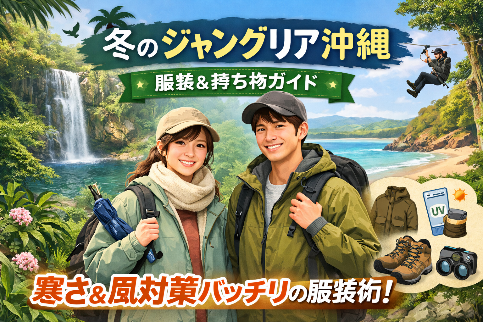 沖縄にある大自然テーマパーク「ジャングリア」は、2025年にオープンしたばかりの注目スポット。大自然を感じられるアクティビティが豊富で、季節を問わず楽しめるのが魅力です。でも冬に訪れるとなると、「どんな服装で行けばいいの?」と迷う人も多いはず。