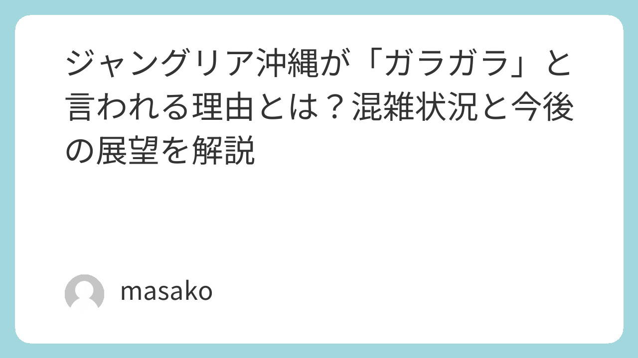 この記事では、ジャングリア沖縄が“ガラガラ”と呼ばれる理由や、その背景にある本当の魅力、そしてこれからの期待までを、わかりやすく解説していきます!