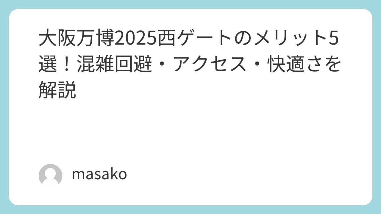万博を最大限に楽しむためには、どこから入るかも重要な戦略の一つです。ぜひ、快適さと利便性を兼ね備えた「西ゲート」を活用して、素晴らしい万博体験を手に入れてください。