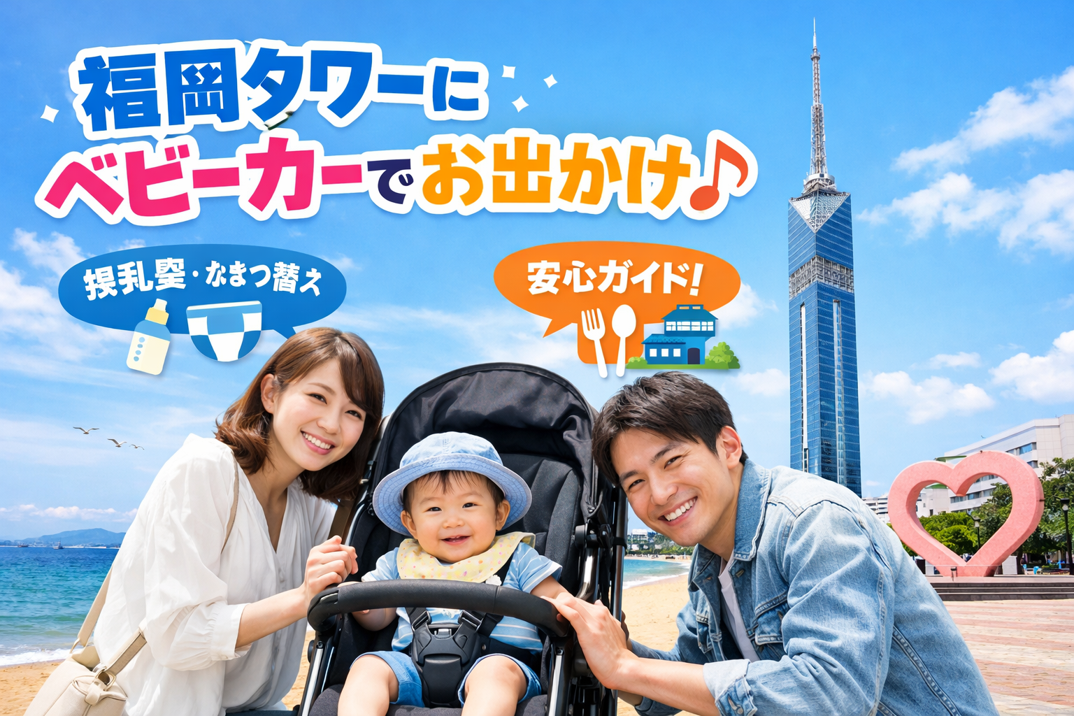 赤ちゃんと一緒に福岡タワーへ行ってみたいけど、「ベビーカーで大丈夫?」「授乳室やオムツ替えスペースはあるの?」など、初めての子連れお出かけには不安がつきものですよね。
